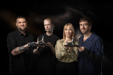 Bild: Die „White Snail”-Preisträger*innen Mikhail Senkov, Marya Imbro, Elsa Kremser und Levin Peter (v.l.n.r.) (Foto: Locarno Film Festival/Ti-Press)